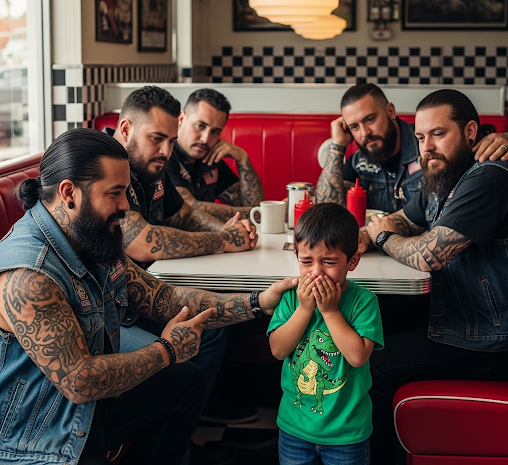 All conversations stopped. Fifteen veterans in leather vests stood frozen, staring at the little boy in a dinosaur T-shirt who had just asked us to commit murder as if he were asking for more salsa for his tacos.