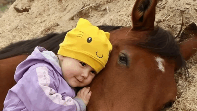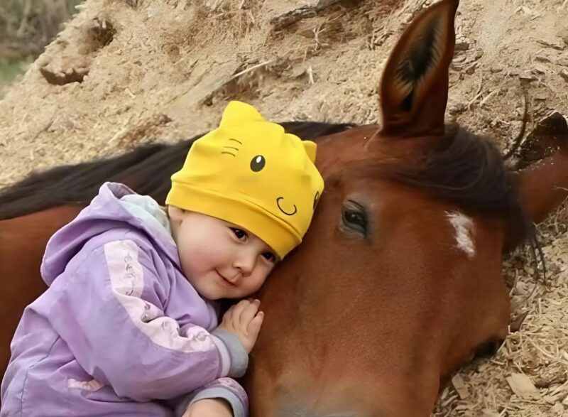 She hugged its neck, pressed her cheek against the soft mane, and patted its warm back with her tiny hands. Sometimes they played together in the hay, and it even happened that my daughter fell asleep right there in the straw, beside the horse – as if it were her best friend.