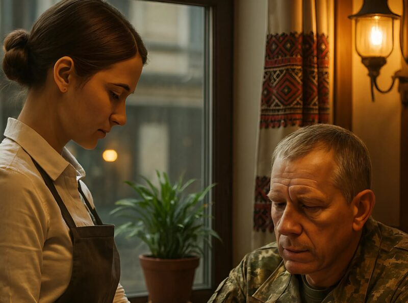 That day, in the corner by the window, sat a man in camouflage uniform, with gray hair — a veteran. He sipped his coffee slowly, lost in thought. His eyes followed Lili constantly.