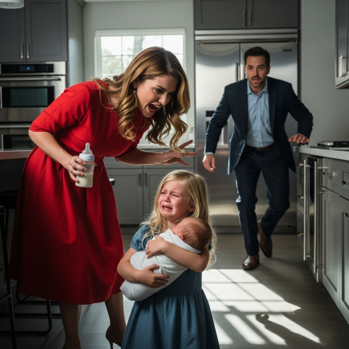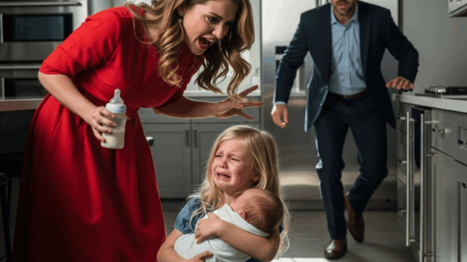 The children huddled together, their eyes wide and trembling, as Cassandra’s threats grew darker. Her words were no longer just about the spill. “Do you think you can just walk around this house, living off your father’s money, while I laugh my head off trying to make everything perfect? You don’t belong here! I could make you disappear, and no one would care!”