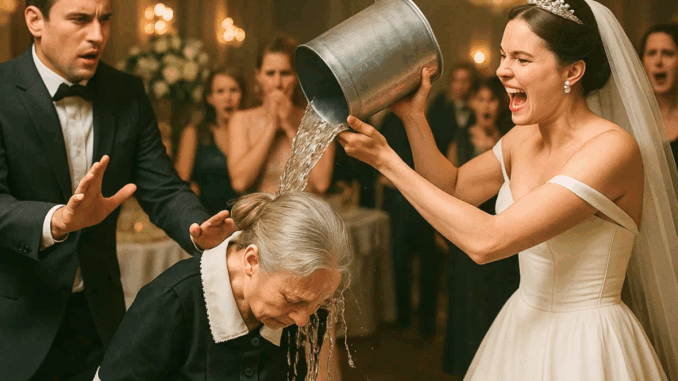 And somewhere in that silence, the room began to lean, not toward the bride, but toward the kneeling woman, whose dignity had been exchanged for a cruel spectacle.