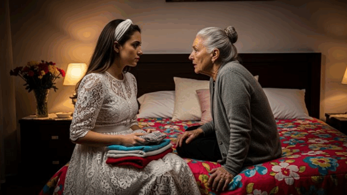 I stood paralyzed. My heart pounded. Before I could react, she widened her eyes and gestured for silence. That look was not a joke. A primal fear seized me, making my hands tremble as they clutched at my wedding gown. At that moment, I could clearly hear the footsteps of my new husband approaching the room.