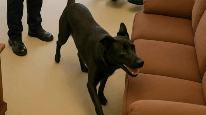 The dog froze at the sofa, the fur on its neck bristled, and suddenly it growled. A second later, it lunged at the soft cushions with a loud bark, burying its snout in the fabric. The owners gasped, and the officer frowned: