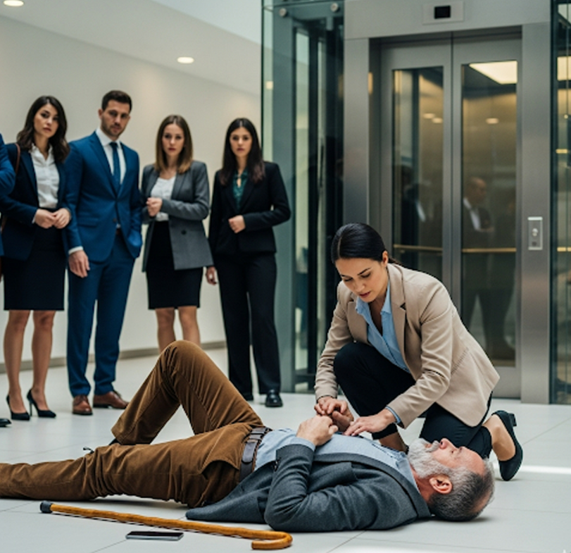 How dare you push an elder. The elevator overloaded when you entered. You should be the one leaving.