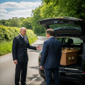 The officer maintained his composure, hand resting on his holster, as the driver began to panic, the reality of his predicament sinking in. It was clear now that the speeding hearse was not rushing to a funeral but was instead part of a desperate attempt to evade capture while moving an illicit shipment.