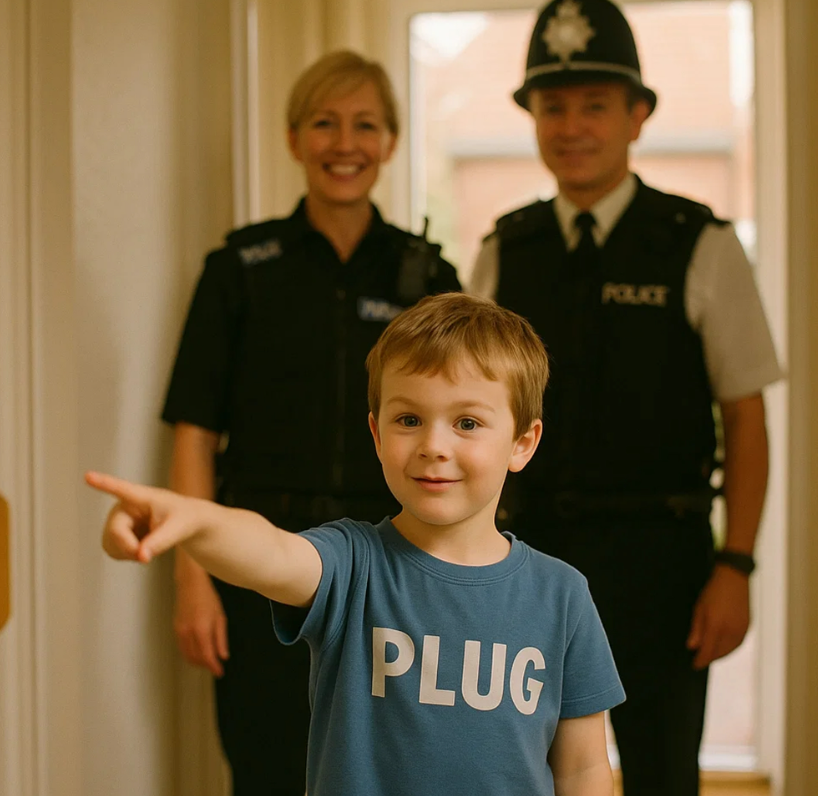 The officers knocked. A few seconds — nothing. Then the door opened, and a boy of about seven appeared in the doorway. Dark hair, clean clothes, a serious gaze like that of an adult.