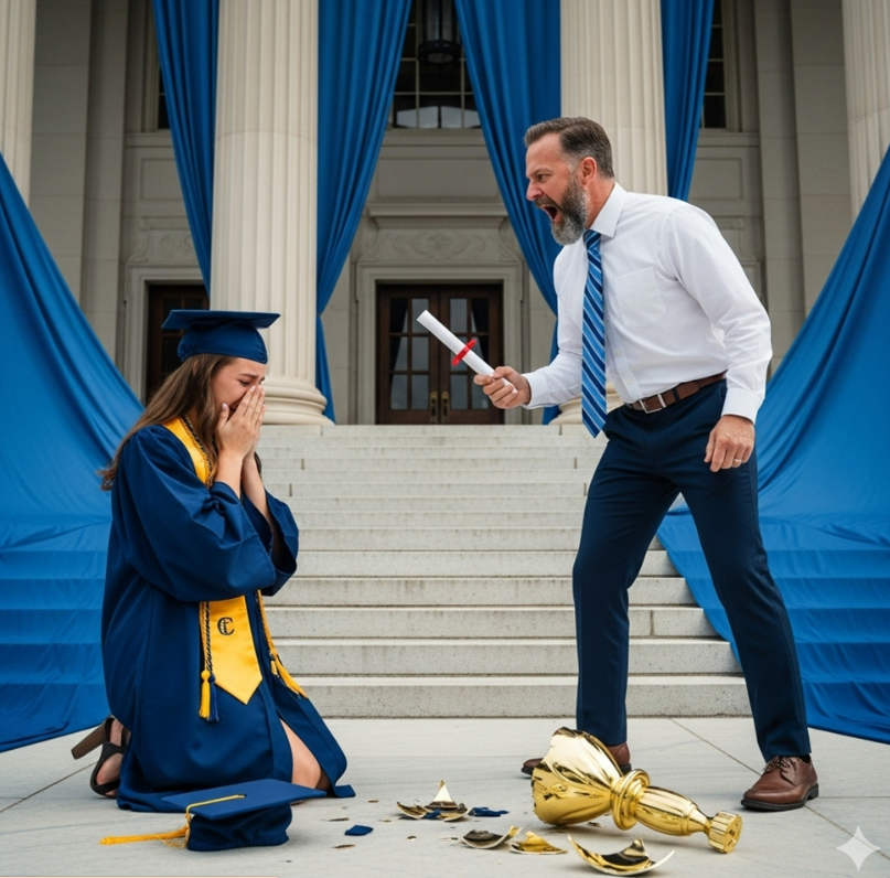 The dean took a step forward. My father glared at him with a look that made him quickly calculate: this wasn’t his fight. Then his eyes found the trophy trembling in my hands.