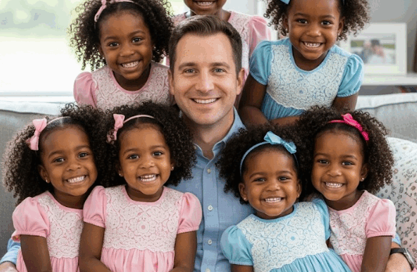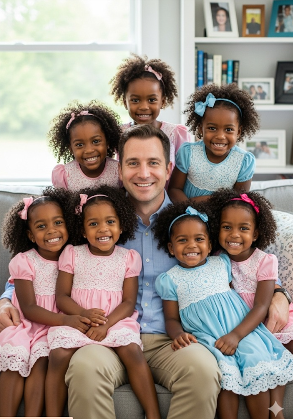 In 2025, 46 years later, Richard sat, frail but proud, in his graceful chair. Around him, radiant women in cream-colored dresses, their hands resting lightly on each other’s shoulders, their faces beaming with pride. Cameras clicked, headlines opened: In 1979, he adopted two black girls. See them now.