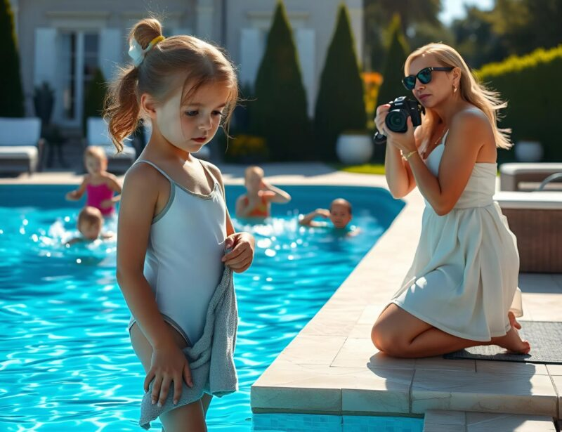 I saw my daughter’s eyes fill with tears. She stood at the edge, clenching her fists, watching the other children splash and laugh. And she – alone, unwanted.