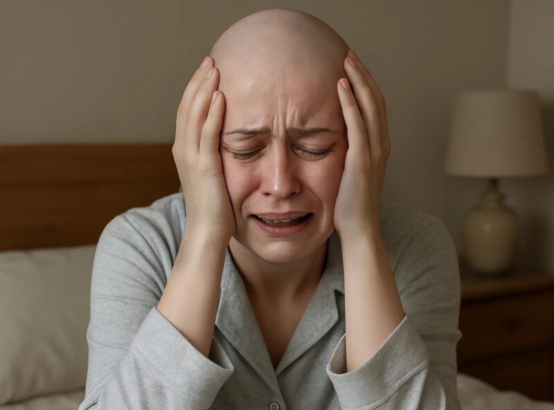 My heart was pounding wildly. I jumped out of bed and stumbled into the bathroom. In the mirror, a stranger stared back at me – completely bald, eyes wide open, lips trembling.