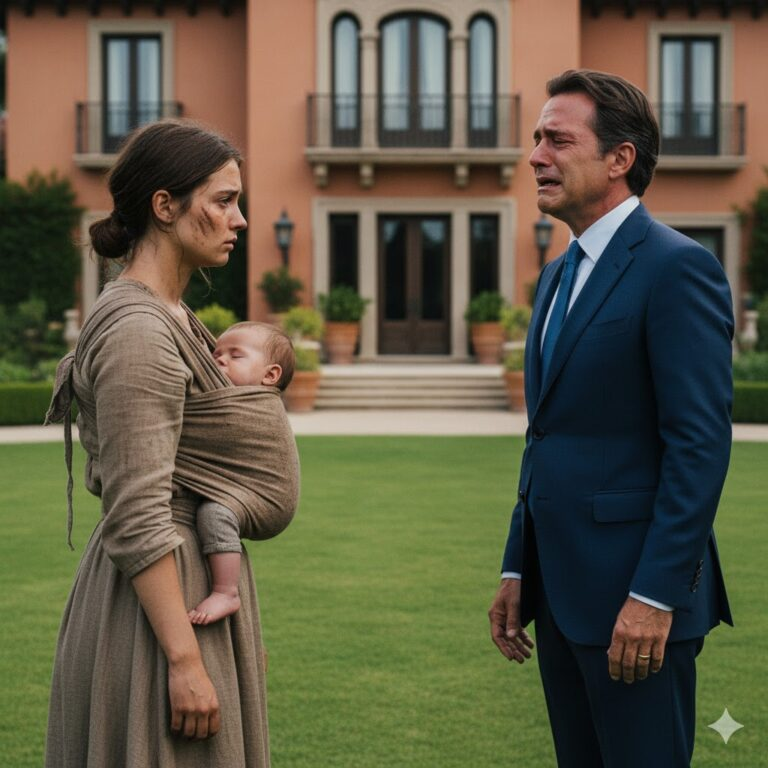 The words stopped Edward Hale, a forty-five-year-old billionaire, dead in his tracks as he was about to enter the gates of his London mansion. He turned and saw a young girl, no older than eighteen, her dress torn, her face smeared with dust. On her back, wrapped tightly in a faded cloth, slept a baby whose fragile breaths were barely audible.