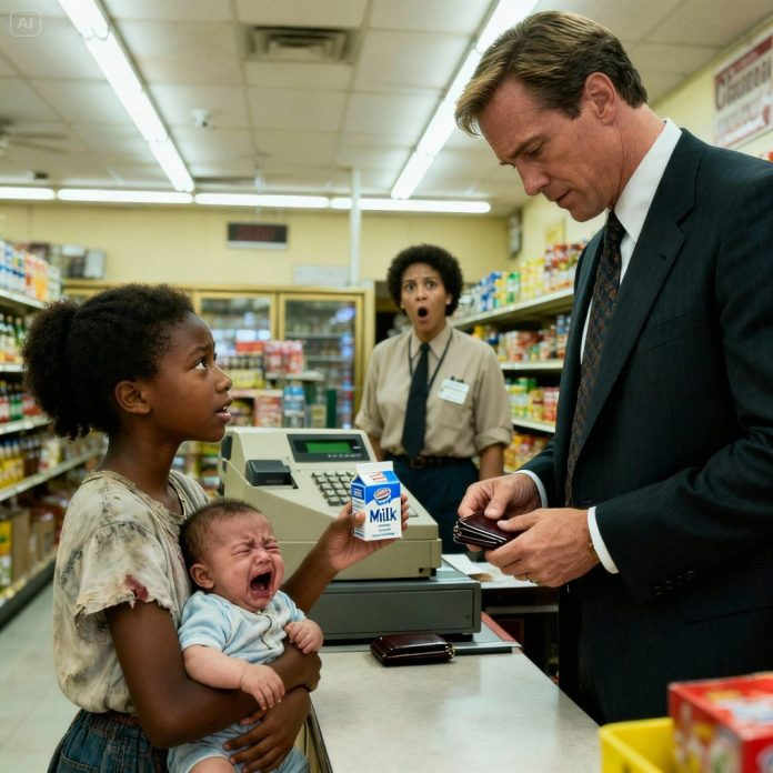 “I promise I’ll repay you when I grow up,” the Black girl begged a millionaire for a small box of milk for her newborn baby brother who was crying from hunger — the man’s response shocked everyone…