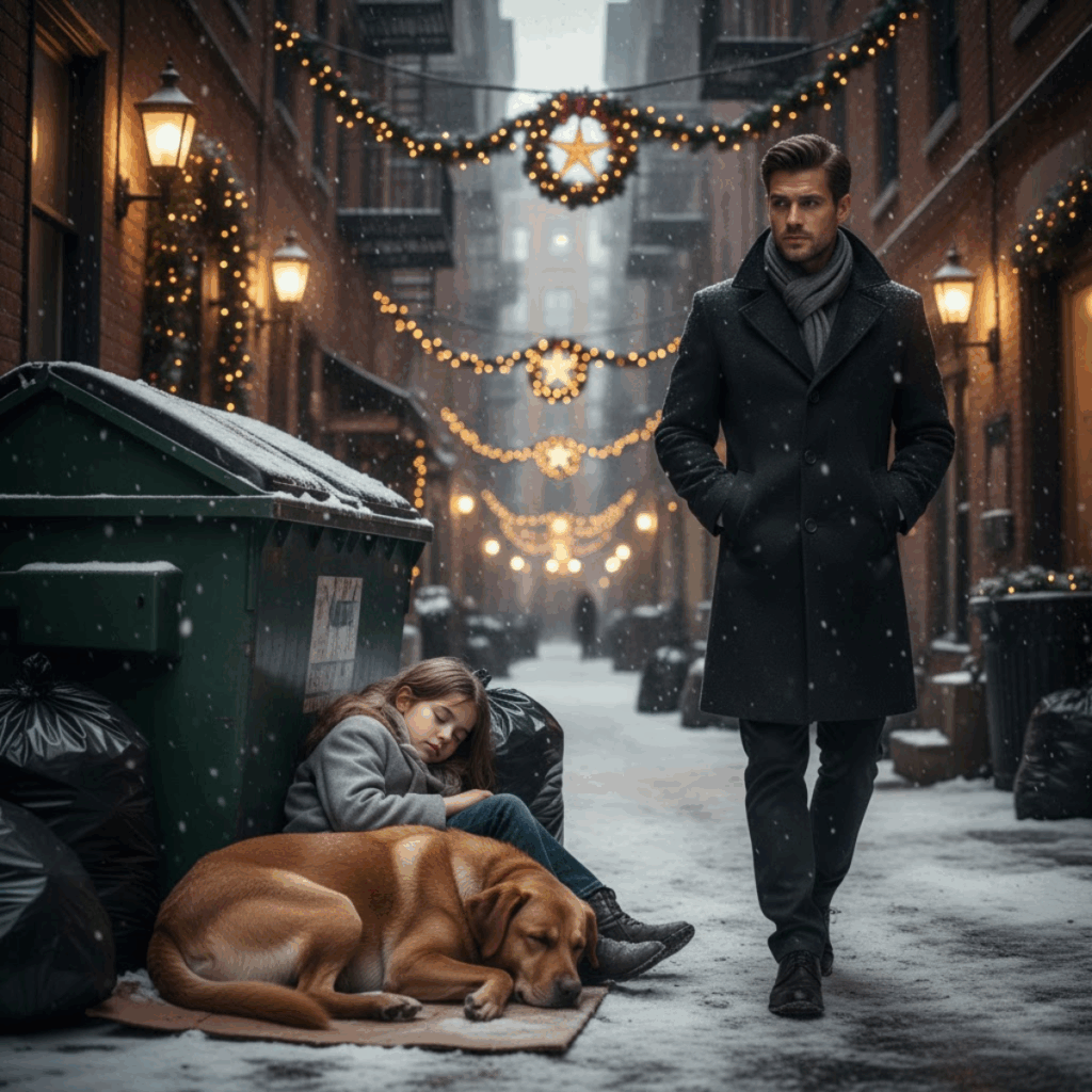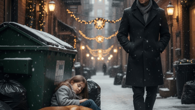 Please don’t take my dog. He’s all I have. I’m not here to take him. Single dad CEO found a little girl and her dog sleeping on trash on Christmas Eve. The truth left him stunned. Snow fell hard that Christmas Eve, covering New York’s cold streets in white silence. But in the alley behind an expensive restaurant beside piles of torn boxes and trash, a little girl was asleep, curled up on the frozen ground, clutching a shivering brown dog to her chest.