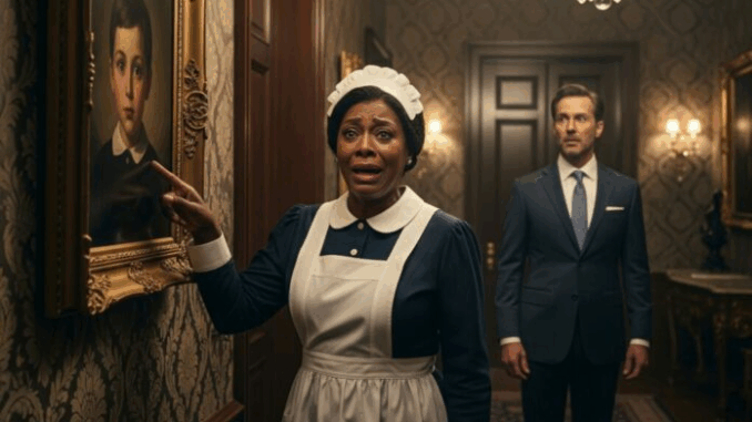One afternoon, a new housemaid named Amara, a gentle Black woman in her early fifties, paused in the hallway near a portrait. It was a painting of Leo as a child—wide eyes, soft expression, holding a toy airplane. Ethan rarely looked at it anymore, but he kept it there because removing it felt like abandoning hope completely.