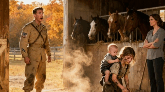 The words hit harder than any bullet ever could. Daniel’s heart pounded as Emily continued, voice trembling. “She left with a man. She said she wasn’t coming back. So I take care of Joshua. We feed the horse, clean the stalls, and Max helps us.”