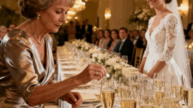 After the ceremony, the reception hall buzzed with music and conversation. Emma watched Ethan laugh with his friends, his arm draped over her new stepmother-in-law, Caroline, whose polished smile never reached her eyes. Then she noticed a subtle movement: Caroline’s hand hovered over her champagne flute as she leaned across the head table. Emma froze. Three seconds—a tiny, seemingly insignificant moment—but Emma caught it. Something had been slipped into her glass.