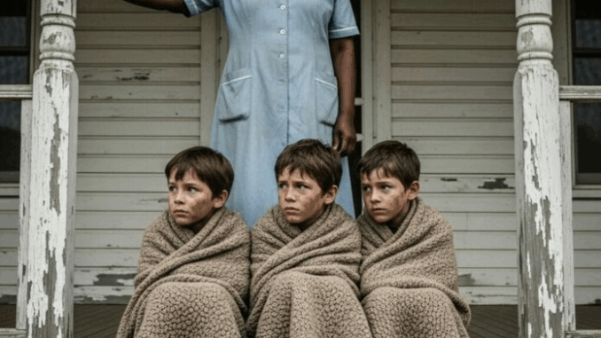 Evelyn didn’t ask who their parents were or why they had ended up in her yard. She only asked when they had last eaten. And just like that, her quiet house was no longer quiet. She gave up her bedroom so the boys could share the warmest room, stretched soup with water, and stitched shoes from thrift shop scraps. Neighbors whispered about a black widow raising three white boys, but Evelyn simply replied, “Children don’t choose their skin. They just need someone to love them right.”