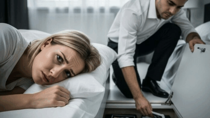 Sarah Caldwell’s heart hammered against her ribs as she lay still in bed, feigning the heavy breaths of sleep. Her husband, David, moved with unnerving quietness, the kind of stealth that suggested he’d done this before. Through her half-lidded eyes, she watched as he crouched near the window, his fingers working carefully at the old wooden floorboards.