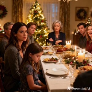 «Everyone, to the table!» Mom claps. She sets a plate in front of Max before he even sits. He’s already chewing, with a second helping waiting on a side dish. He grins like he owns a bank. Lily slides into her chair and looks at the placemat. There’s no plate, no fork—just a bare square with a smear where a candy cane melted last year.