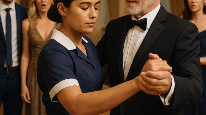 Maria placed one hand on the millionaire’s shoulder, the other in his hand, and moved with an elegance no one expected. Her steps were firm, smooth, perfectly synchronized with the rhythm. The orchestra played a classic waltz, and the sound of the violins seemed to swirl around them like a spell.