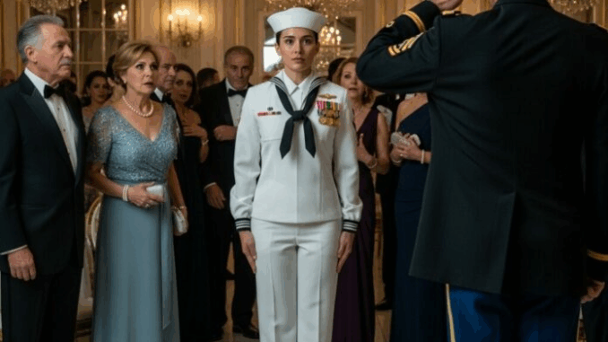 My father turned, irritation twisting into confusion. My mother froze mid-breath, pearls slipping slightly at her throat. And then he stopped in front of me. Eyes locked on mine, uniform flawless, medals catching the light, he lifted his hand in a precise salute.