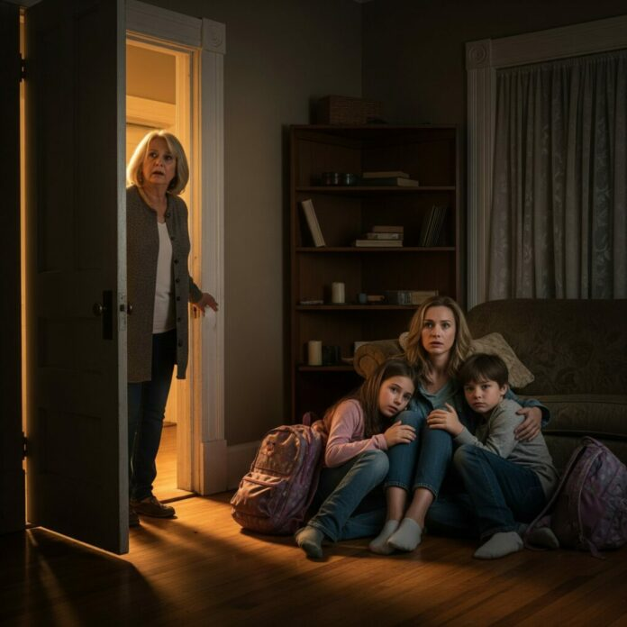 Susan hesitated, then stepped aside. Pamela slowly emerged from the stairwell. Emma and Lucas hid behind her legs.