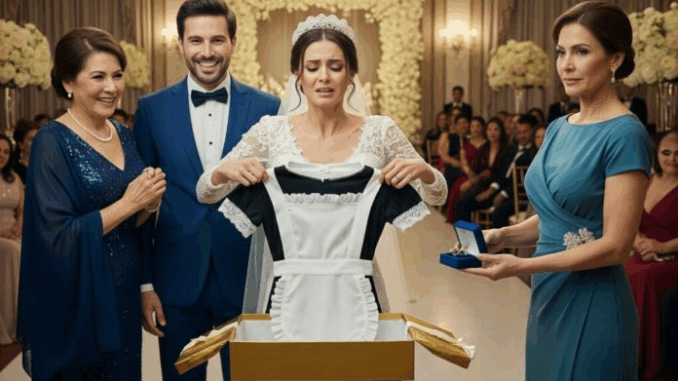 My name is Elellanena Pierce, and nothing could have prepared me for the moment my daughter, Molly Pierce, stood frozen at her own wedding reception, holding a maid’s uniform like it was a sentence rather than a gift.