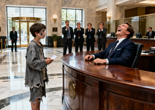 “Your balance?” The manager frowned, looking him up and down. “Which account, kid? The piggy bank?”