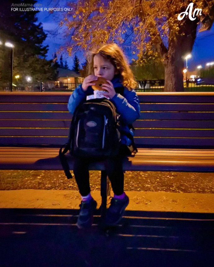 She was tiny. Her dark brown hair was tangled, a little too long, like it hadn’t been brushed properly in days. Her backpack hung off one shoulder as if it were too heavy for her. Her legs didn’t reach the ground. They just swung back and forth, slow and unsure, like she didn’t know whether to run or stay put.