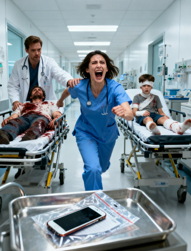 I moved before my mind could catch up. I turned back toward the ER, walking fast, then faster, coat flapping, badge swinging, heart hammering in my ears. The smell of antiseptic sharpened as I got closer, and so did the noise—the rolling tide of voices, beeps, orders.